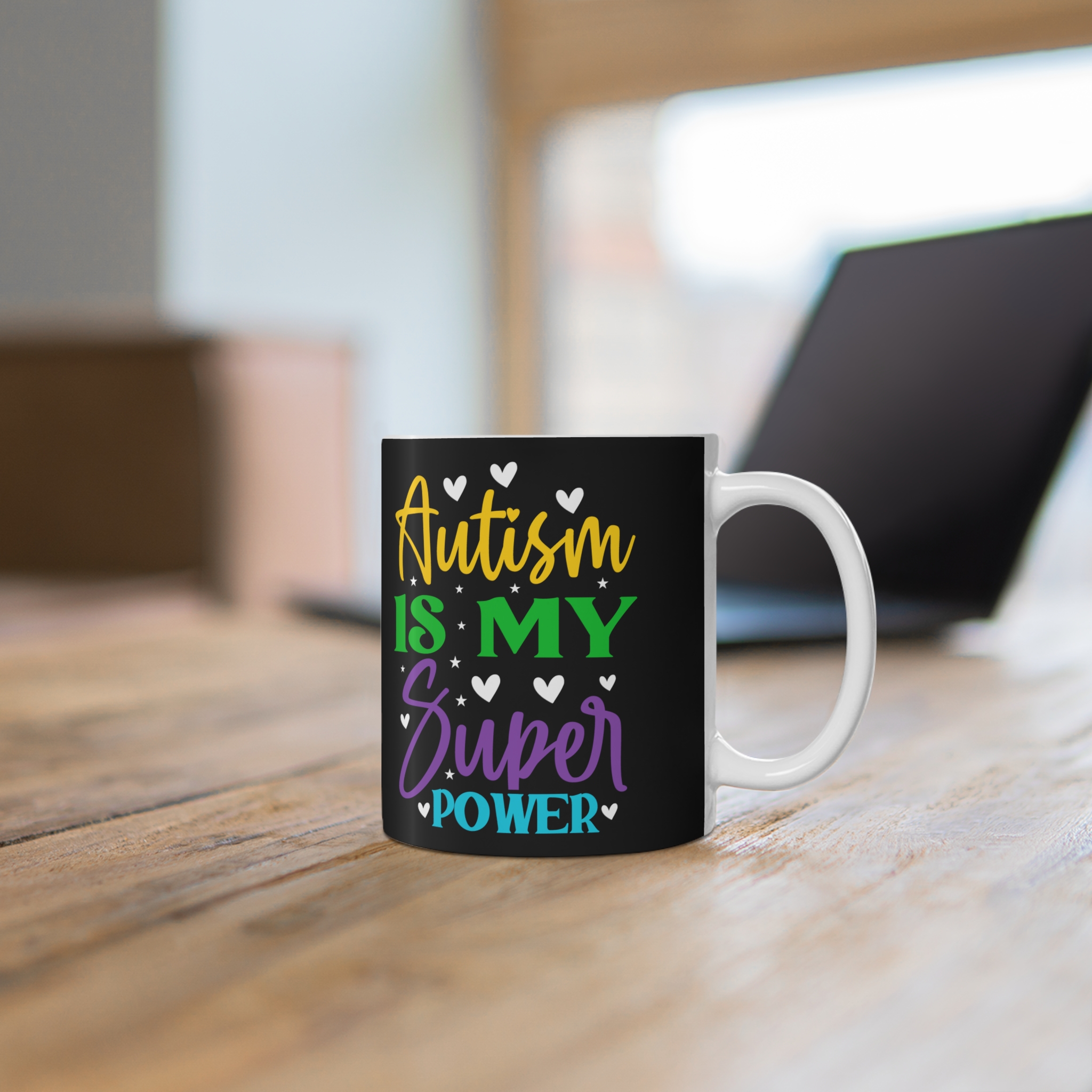 Warm hands around a glossy white mug, bright lettering catching the light: this 11oz ceramic cup speaks with color and confidence. The message celebrates neurodiversity in playful, energetic script—sunny yellow, bold green, royal purple, and teal combine to make a small but steady statement at your desk or breakfast table. It fits easily into morning routines: coffee, tea, or cocoa feels friendlier when your mug reflects who you are. The comfortable C-handle and rounded rim make each sip calm and familiar. Durable enough for daily use, this mug handles microwave reheats and dishwasher cycles without fuss, and it’s made from lead- and BPA-free ceramic for everyday peace of mind. Keep it on the counter where it can remind you — or someone you care about — that difference is strength.