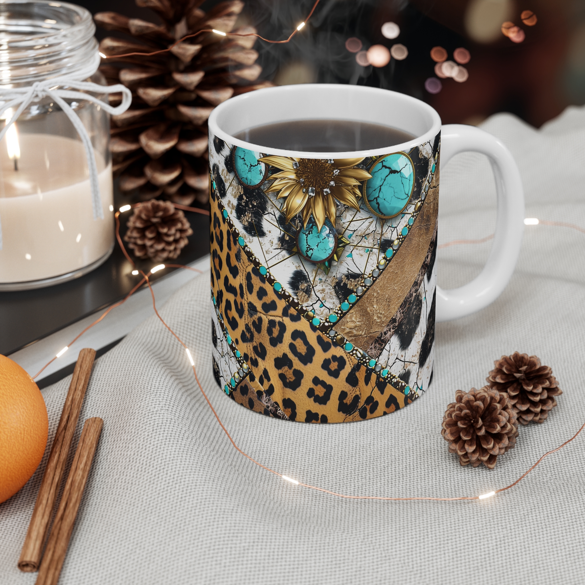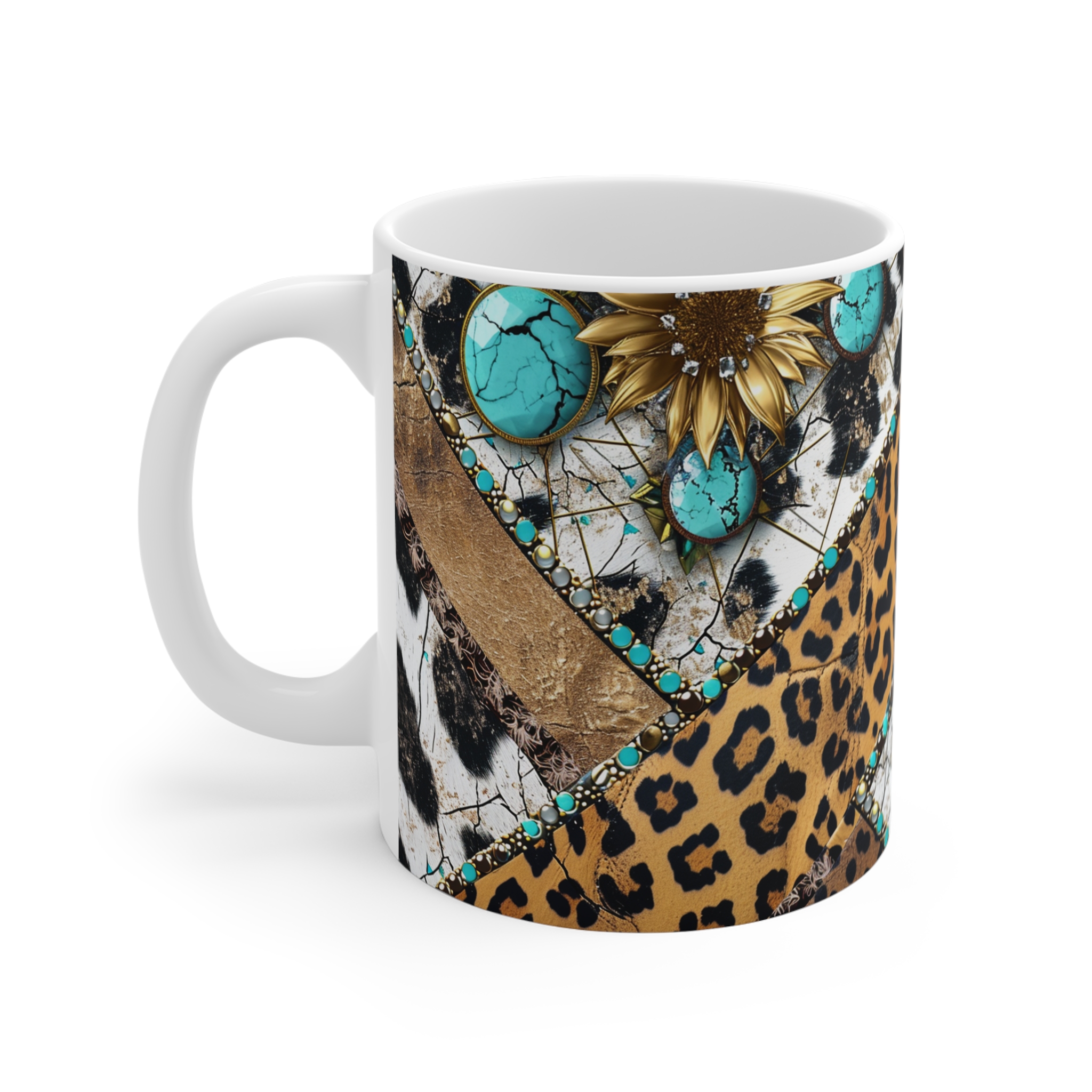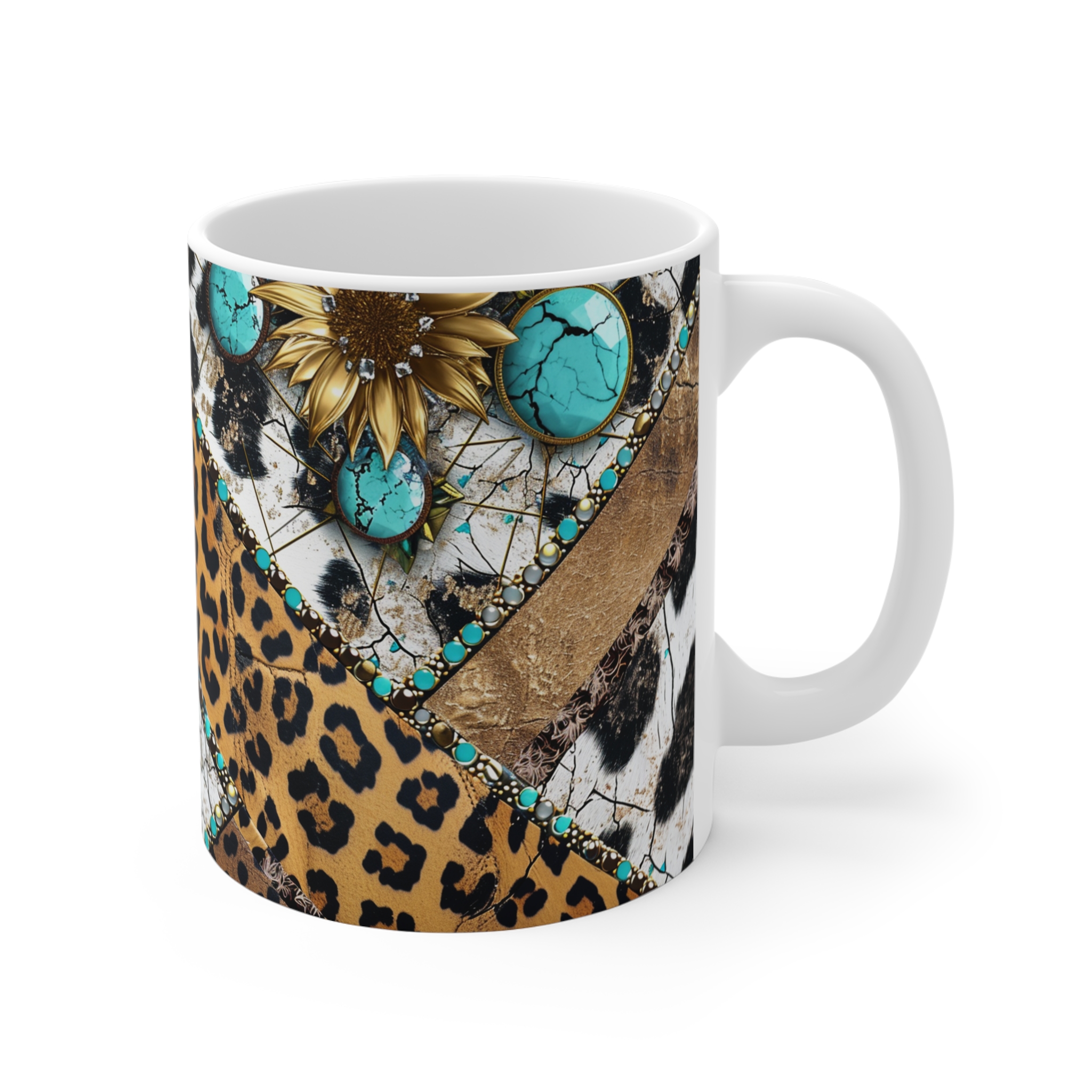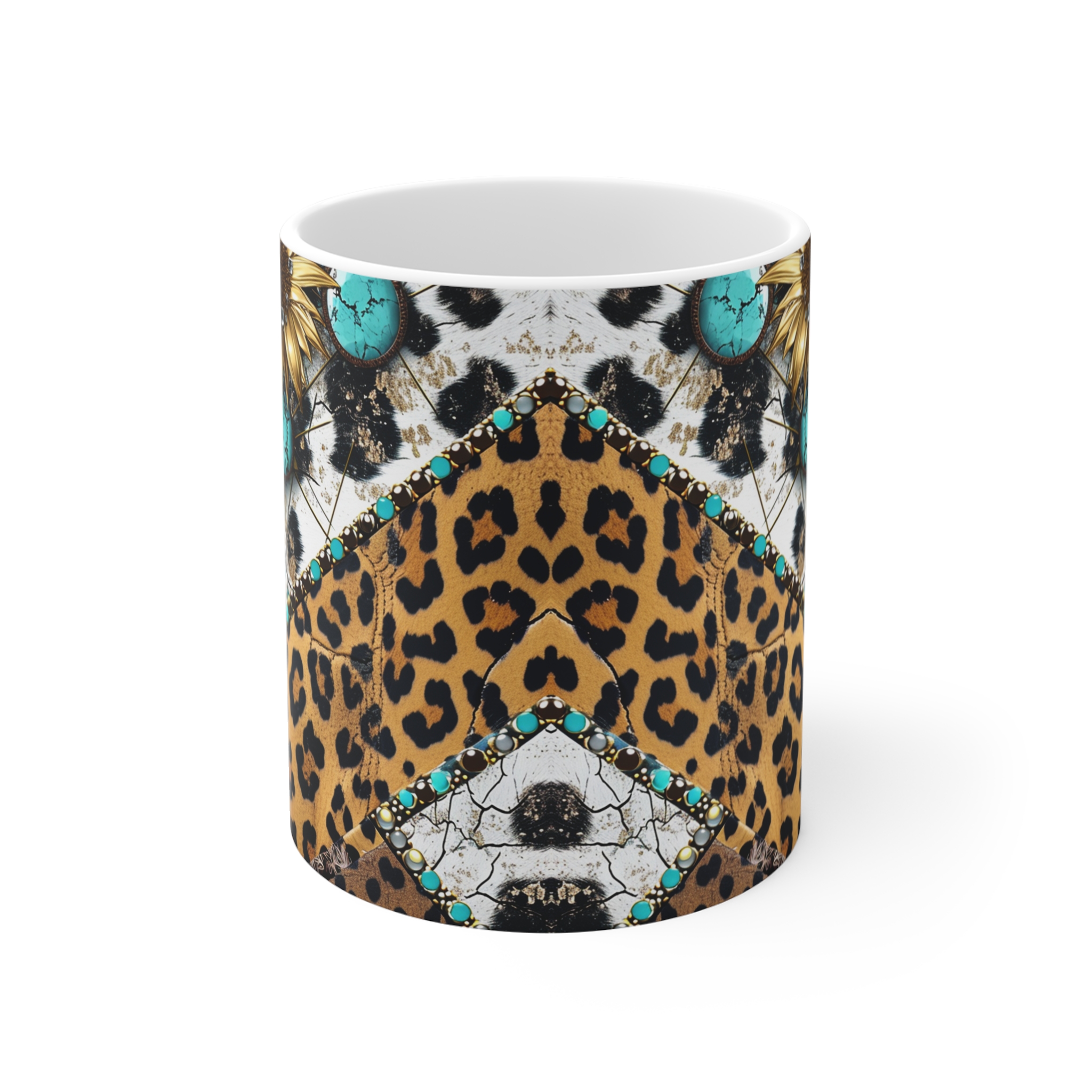 Elevate your morning routine with this eye-catching mug. Crafted from durable white ceramic, it features a vibrant design that combines leopard patterns with turquoise accents, making it a unique addition to your kitchenware. Perfect for sipping your favorite hot beverage, this mug brings a sense of boldness and flair to any moment of the day. Ideal for coffee lovers, tea enthusiasts, or anyone looking to add a touch of personality to their drinkware collection. This mug is perfect for gifting during holidays like Christmas, birthdays, or housewarming parties, and is sure to be a conversation starter at any occasion.