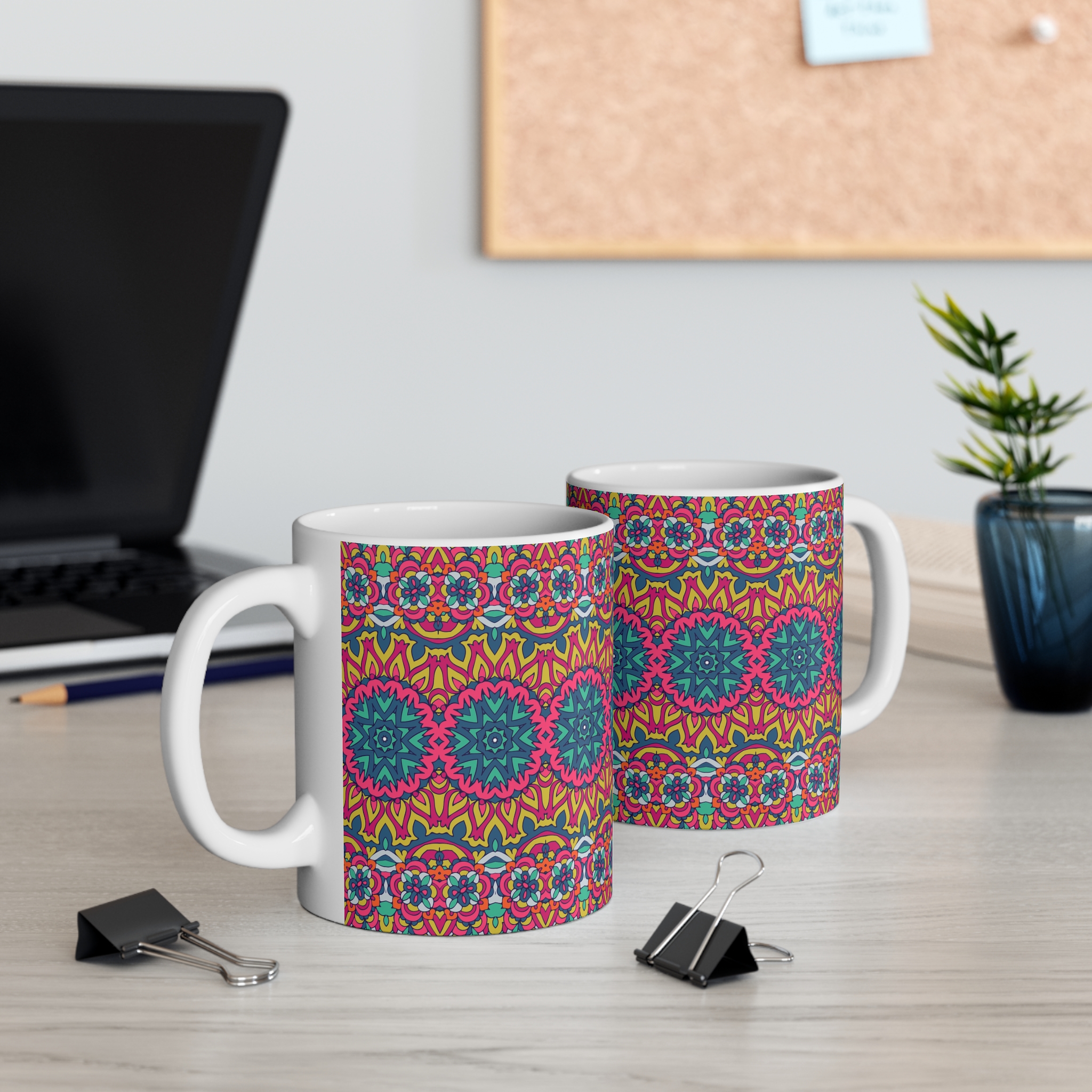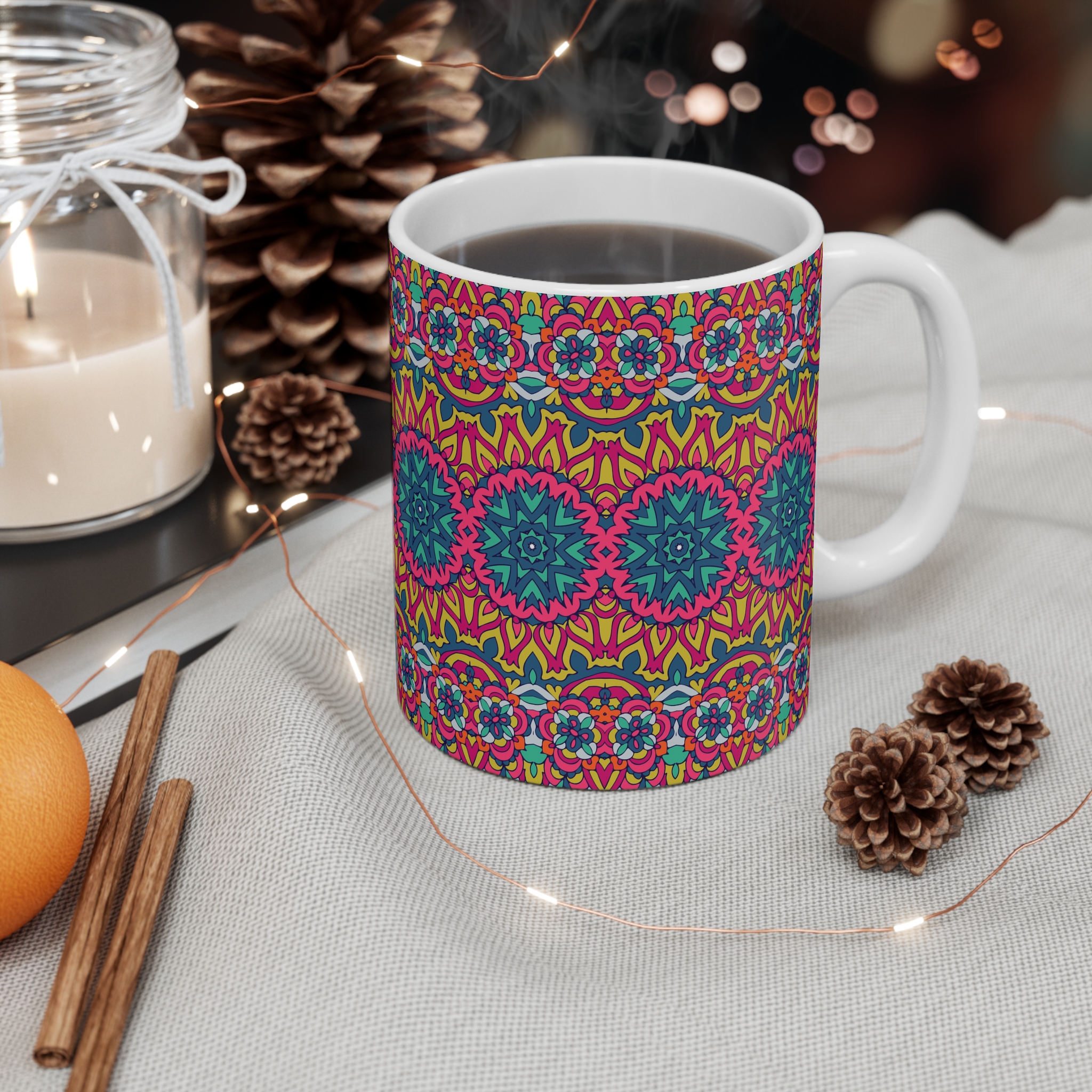 Introducing a vibrant and stylish mug that’s perfect for every occasion! This 11oz ceramic mug features a stunning, colorful design that instantly brightens up your morning coffee or tea ritual. Imagine sipping your favorite beverage while surrounded by beautiful patterns that inspire joy and creativity. Ideal for home or office use, this mug is sure to become a beloved companion. It’s a fantastic gift for friends and family, making it perfect for birthdays, holidays, or just because! Whether it’s for a warm cup on a chilly day or a refreshing iced drink in the summer, this mug fits seamlessly into any lifestyle, enhancing every moment spent with a warm beverage. Celebrate the little pleasures in life with this beautiful mug!