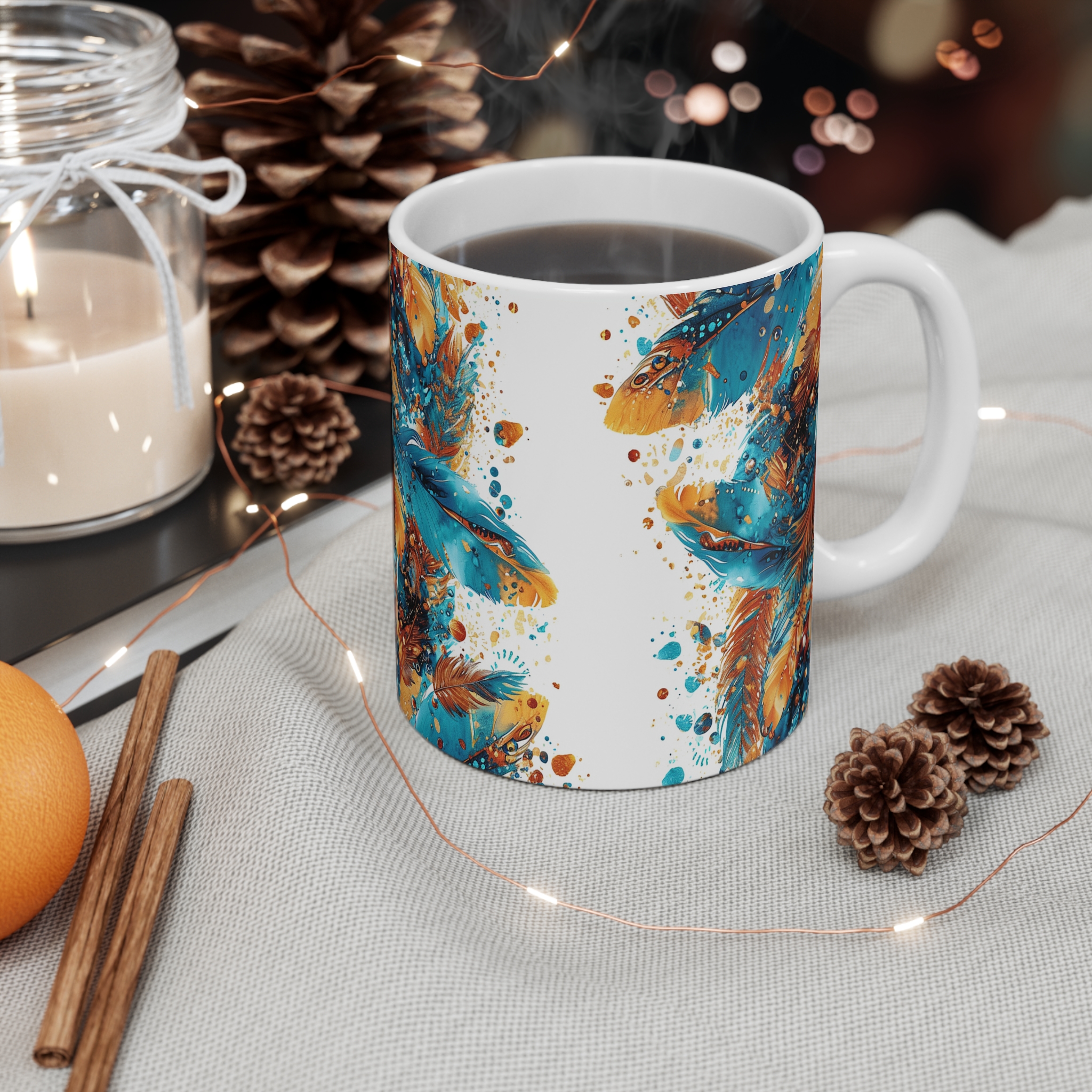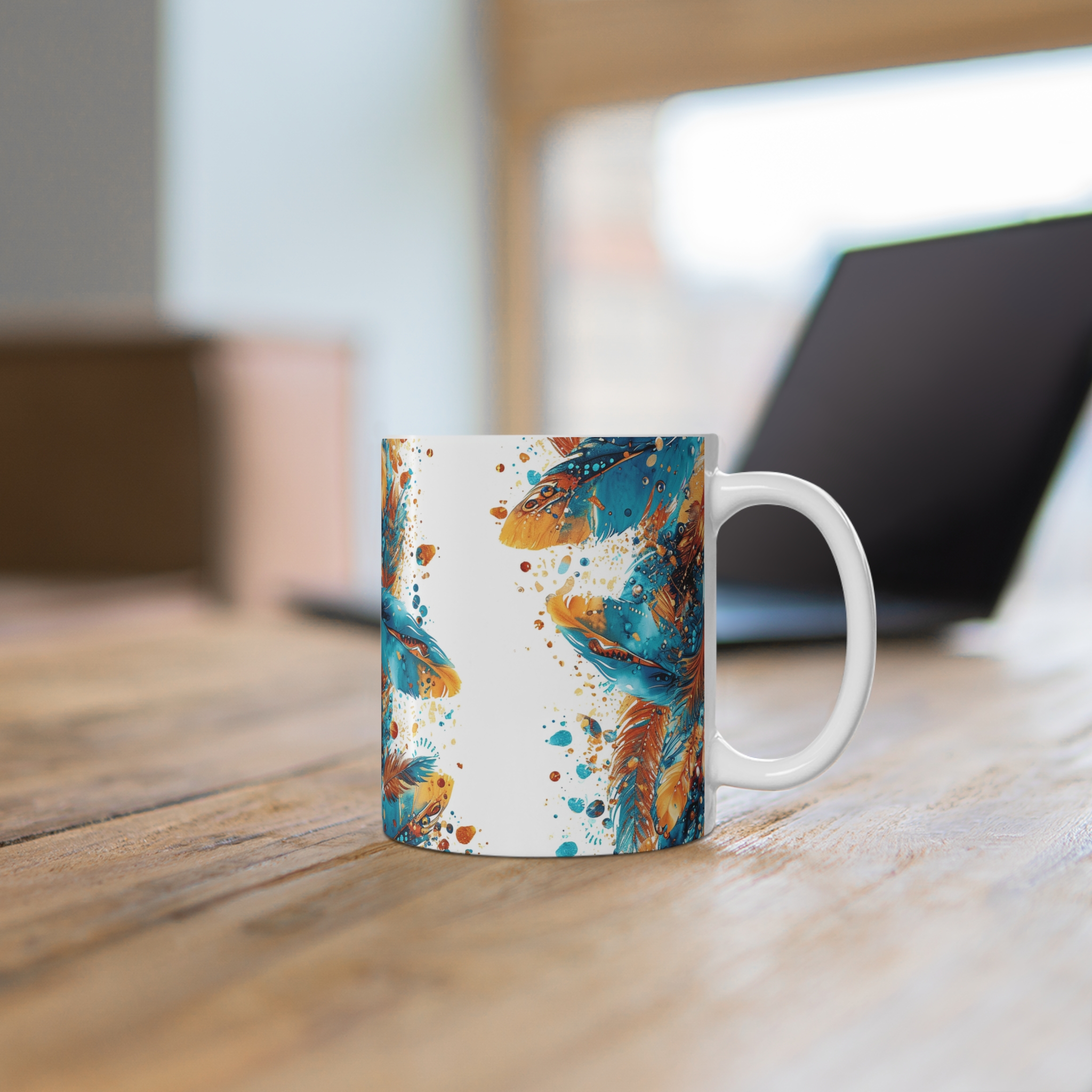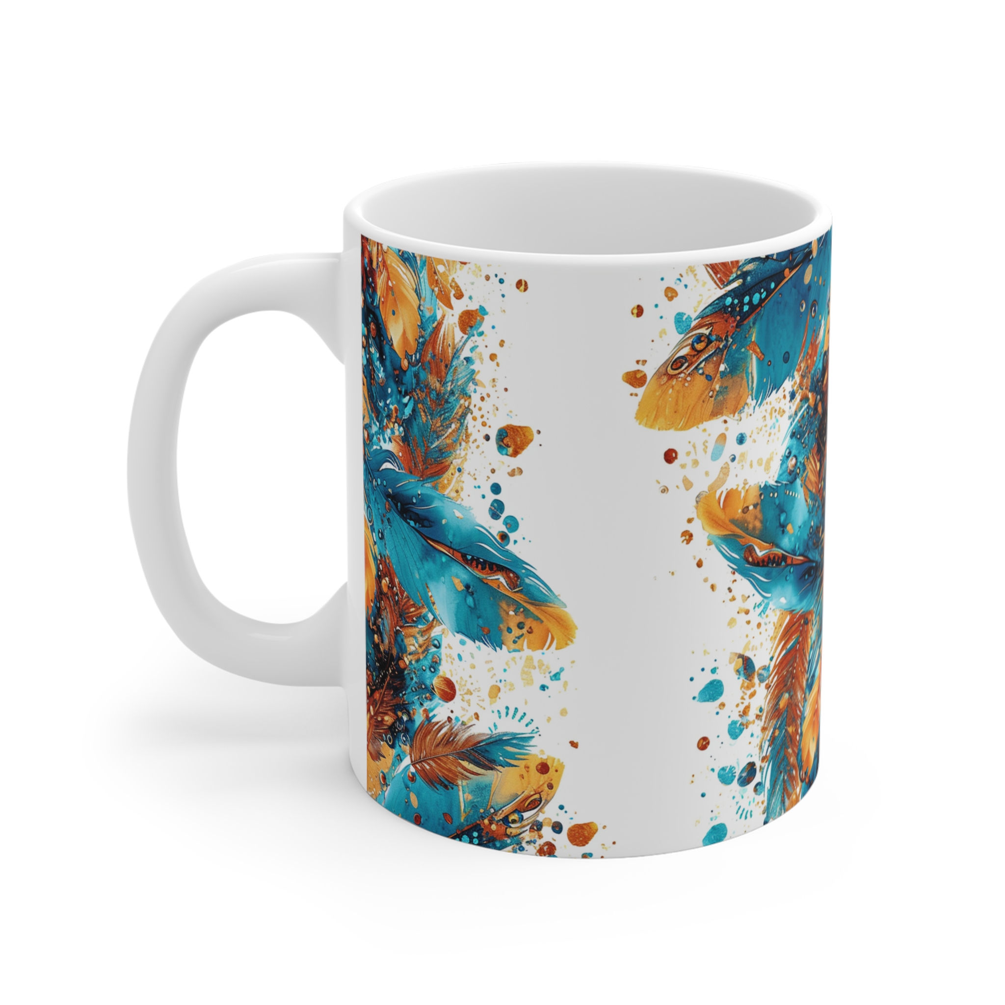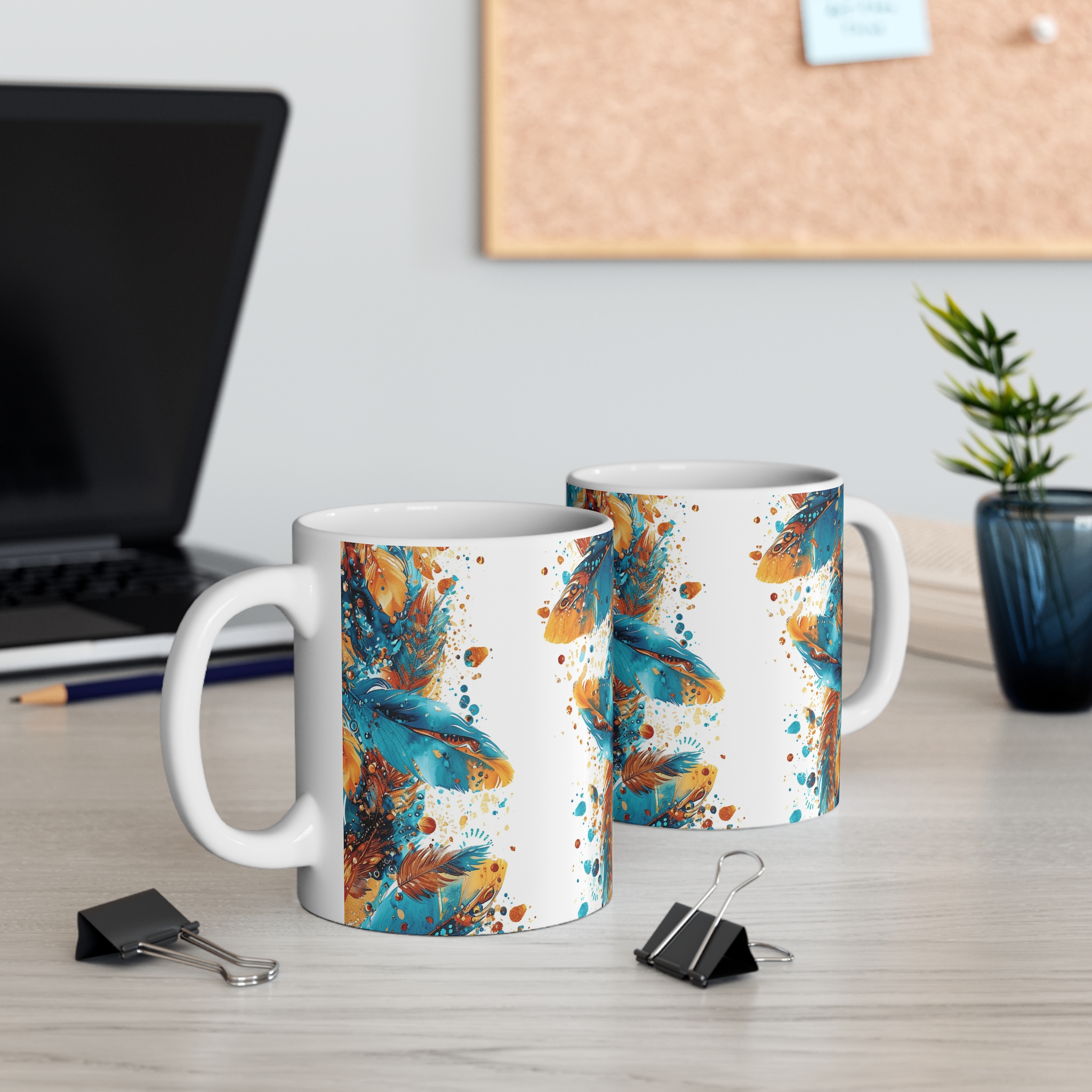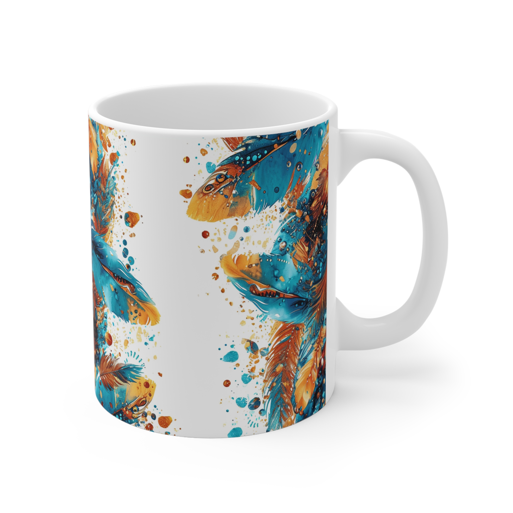 Elevate your everyday rituals with this beautifully designed mug. Adorned with vibrant feathers and splashes of color, it brings a sense of warmth and creativity to your coffee breaks or tea times. Ideal for those who appreciate unique, artistic touches in their daily life, this mug is perfect for art lovers, nature enthusiasts, or anyone who enjoys a cozy cup at home or in the office. It makes a delightful gift for birthdays, holidays like Christmas, or as a thoughtful gesture for friends and family at any celebration. Enjoy your favorite beverages in style and let your personality shine with every sip!