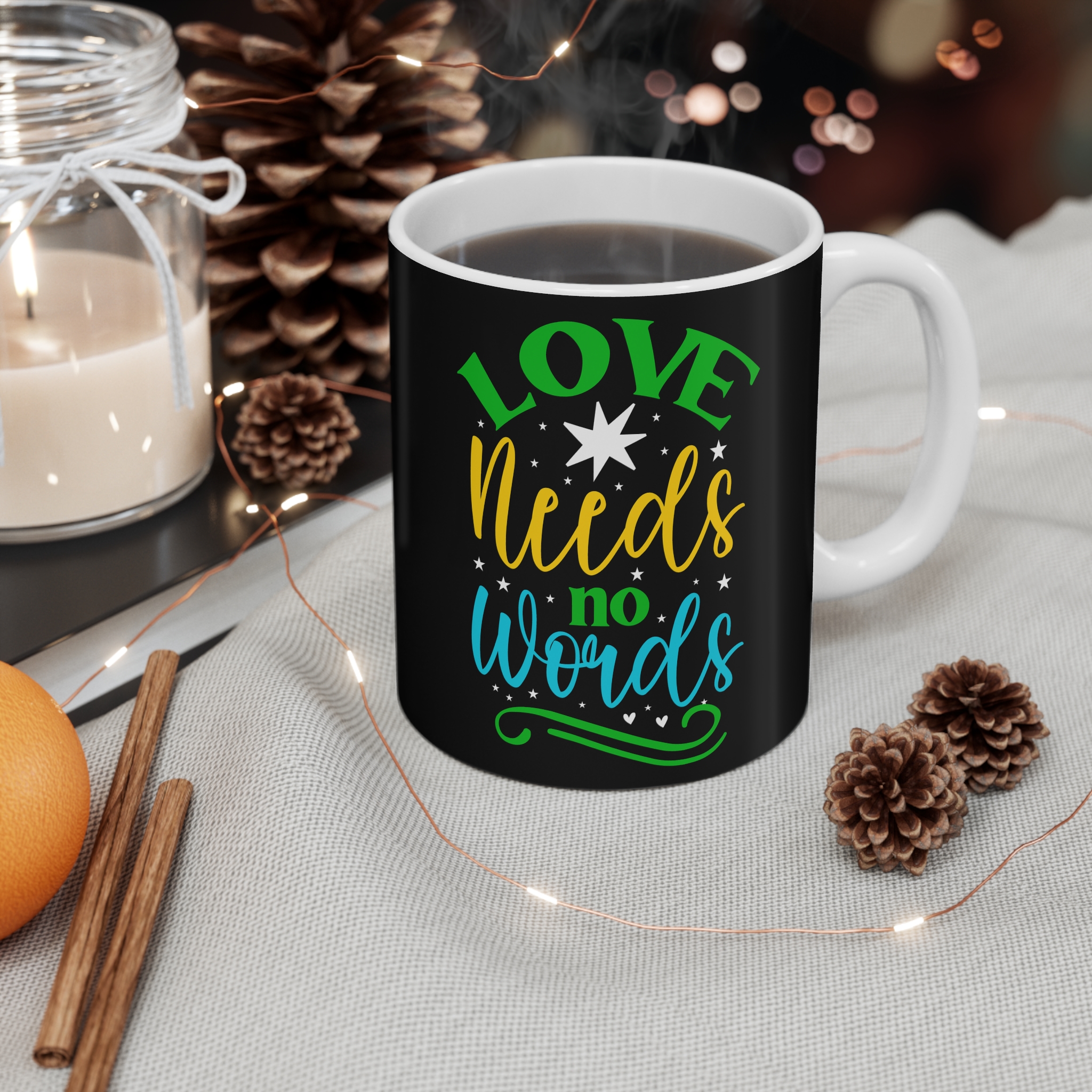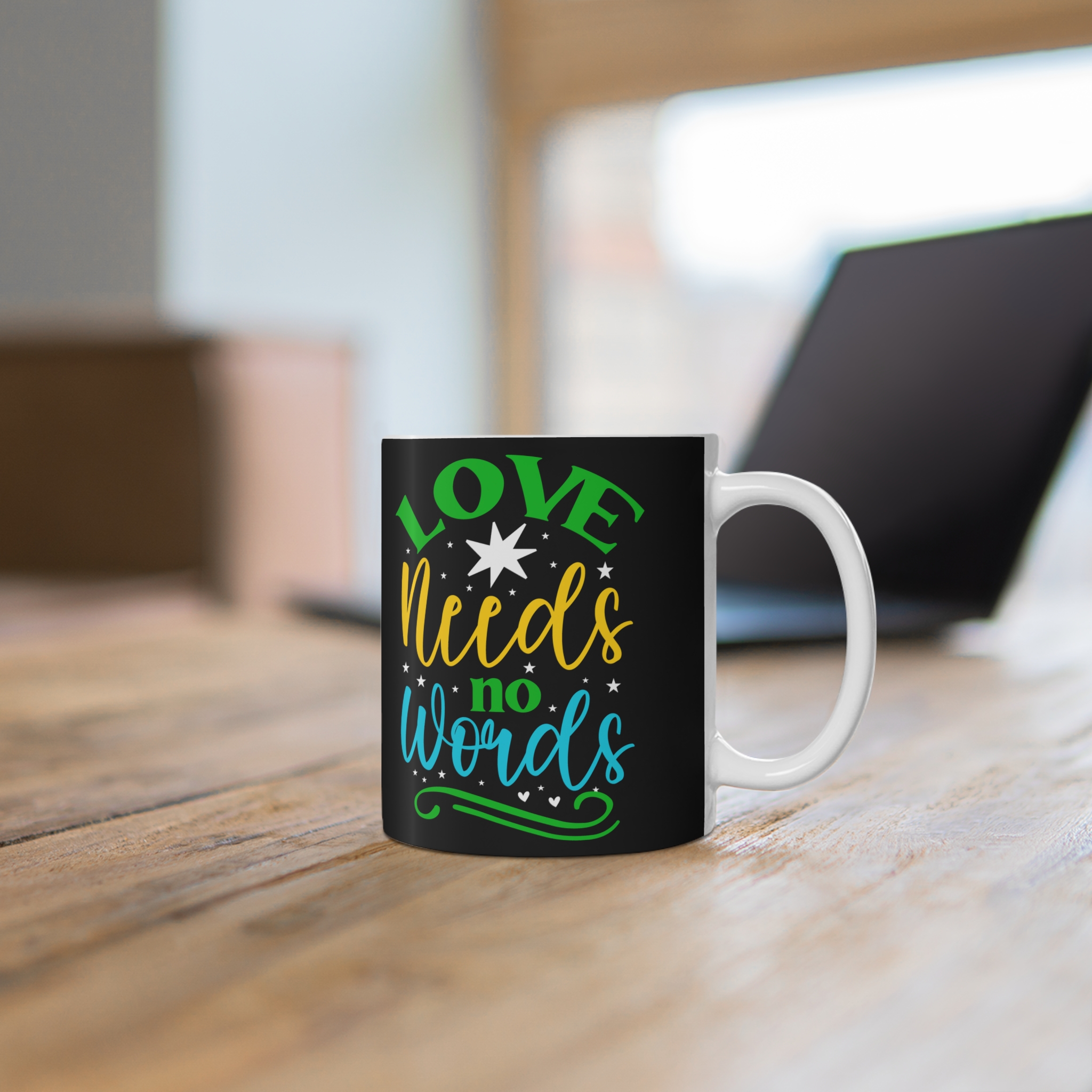 This 11 oz white ceramic mug speaks in quiet moments. Simple text—“Love Needs No Words”—sits cleanly on a smooth rounded surface, inviting slow mornings, warm conversations, and thoughtful pauses. It’s the kind of cup you reach for when you want comfort without fuss: sturdy in hand, reliable in the routine, and unobtrusive on a cluttered countertop. For someone who treasures small, sincere expressions of care, this mug brings a gentle reminder to the table during coffee rituals, late-night chats, or relaxed weekend breakfasts. It washes up easily after busy days and handles reheats without complaint, so it stays part of daily life rather than relegated to special shelves.