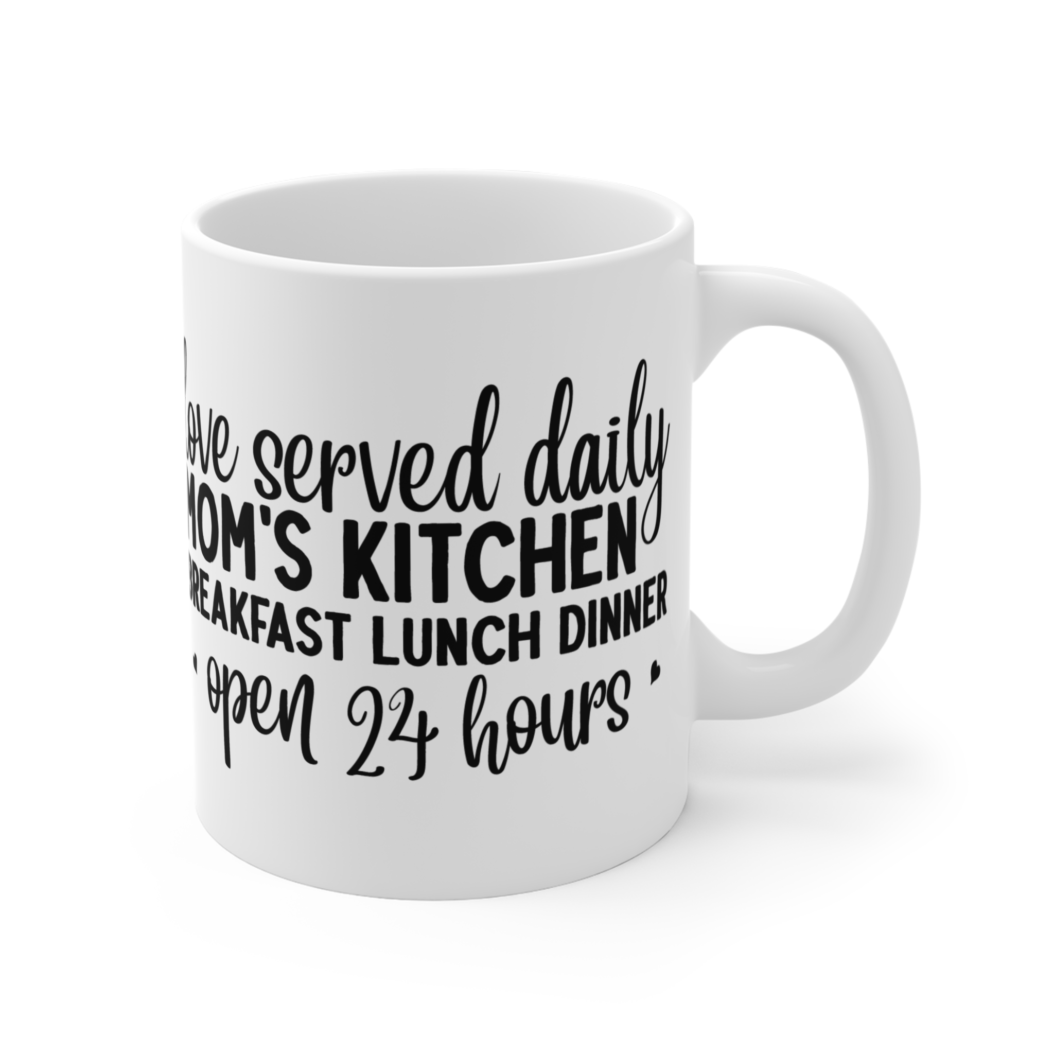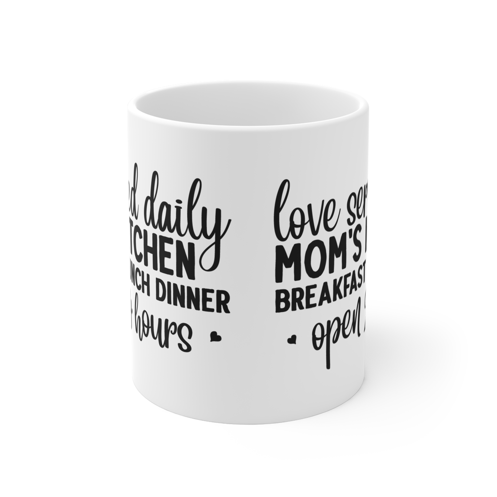 Introducing a charming Mug that combines functionality with a delightful design. This 11oz white ceramic piece features a whimsical script that adds a touch of warmth to your kitchen routine. Perfect for those cozy mornings or afternoon breaks, it radiates a welcoming vibe, making every sip feel like a homemade treat. Ideal for anyone who loves to celebrate the joy of home-cooked meals, this mug is great for family gatherings, birthdays, or as a heartwarming gift for Mother’s Day. Elevate your daily coffee ritual or surprise a loved one with this thoughtful addition to their kitchenware.